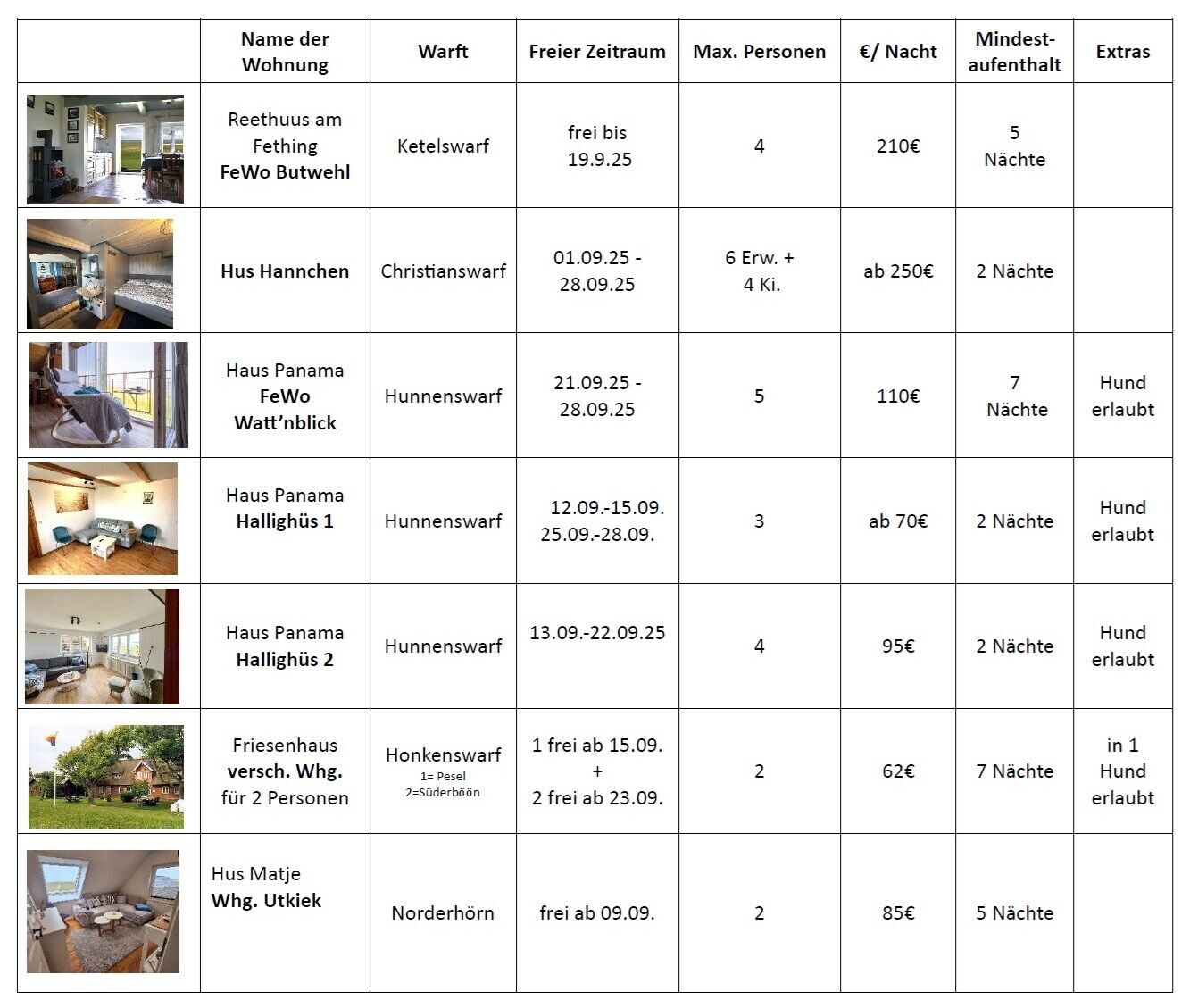 Um Ihnen die Suche nach dem passenden Quartier etwas zu vereinfachen, finden Sie hier Buchungslücken für